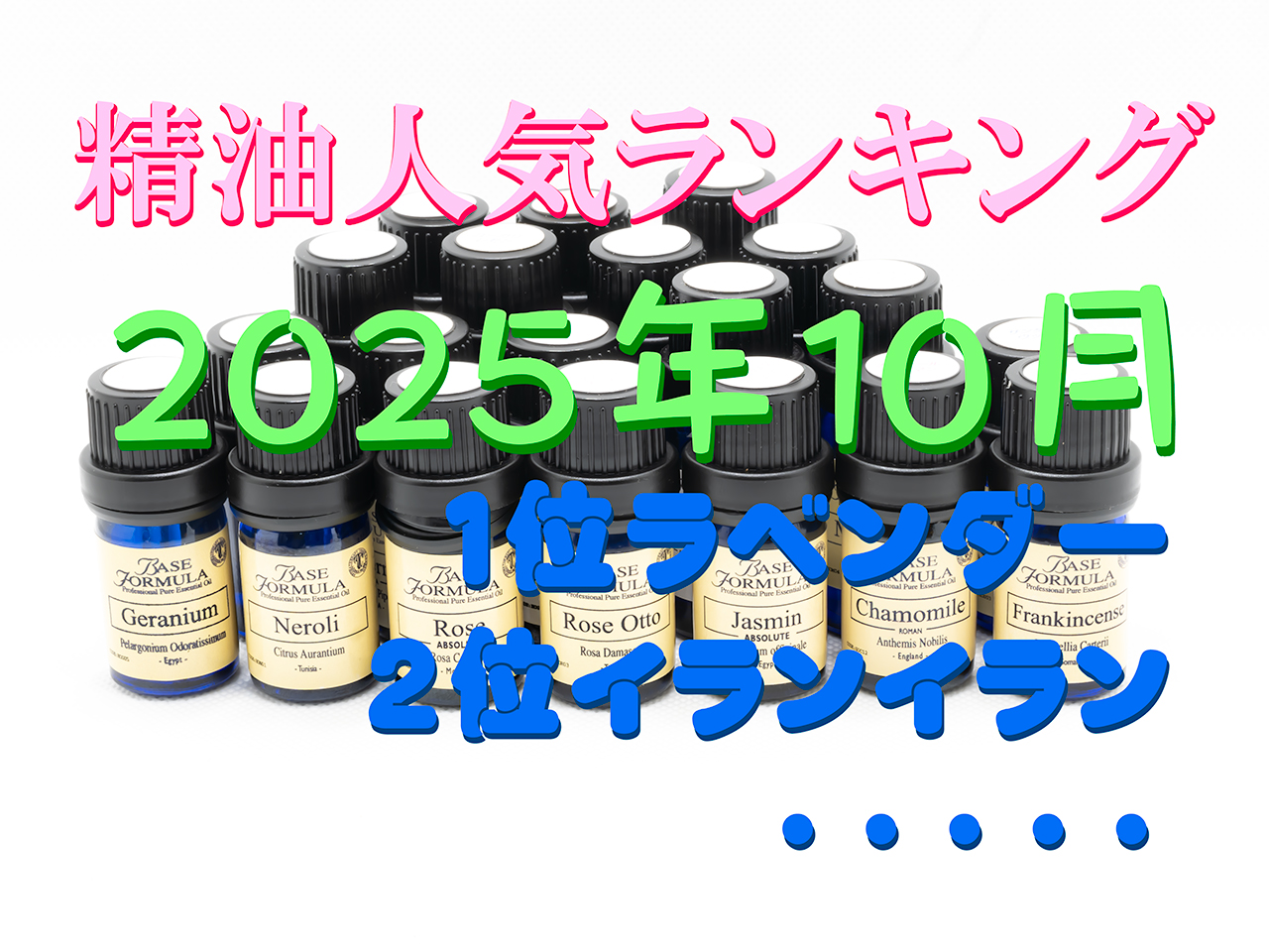 2025年10月に使用された精油のランキングです。 1位 ラベンダー(29.4%) 2位 イランイラン(23.5%) 3位 オレンジ・スイート(11.8%) 3位 ゼラニウム(11.8%) 3位 レモンマートル(11.8%) 6位 グレープフルーツ(5.9%) 7位 ローズマリー(5.9%) 今月前半はまだ残暑が残り、後半は寒い日が多くなりましたね。 選ばれた精油は夏場と異なり、さわやかな感じの香りや温かみのある香りが多かったです。 香りを楽しむのには良い季節ですね。 |