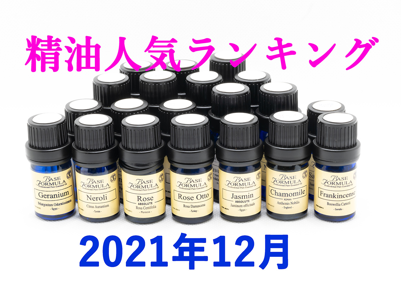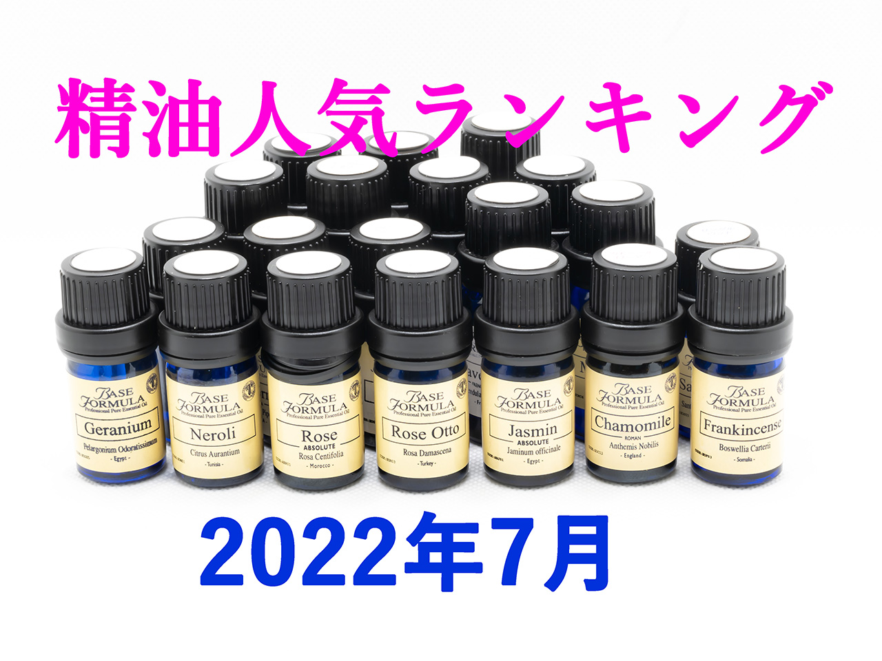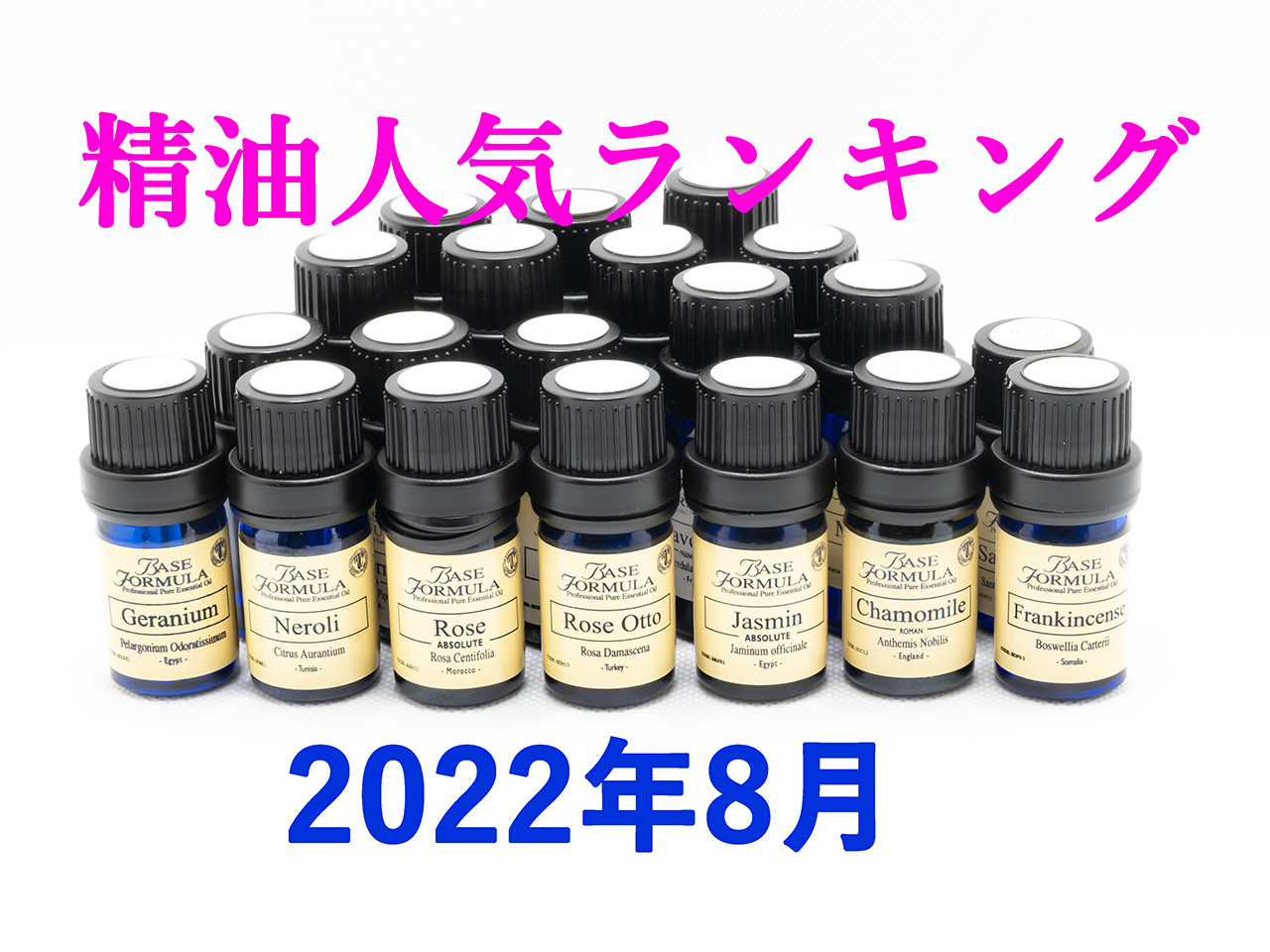 1位 イランイラン(22.7%) 2位 ラベンダー(22.7%) 3位 レモンマートル(13.6%) 4位 ローズ・アブソリュート(9.1%) 5位 カモミール・ローマン(4.5%) 5位 ゼラニウム(4.5%) 5位 ネロリ(4.5%) 5位 ベルガモット(4.5%) 5位 ローズ・オットー(4.5%) 5位 ローズウッド(4.5%) 5位 ローズマリー(4.5%) |