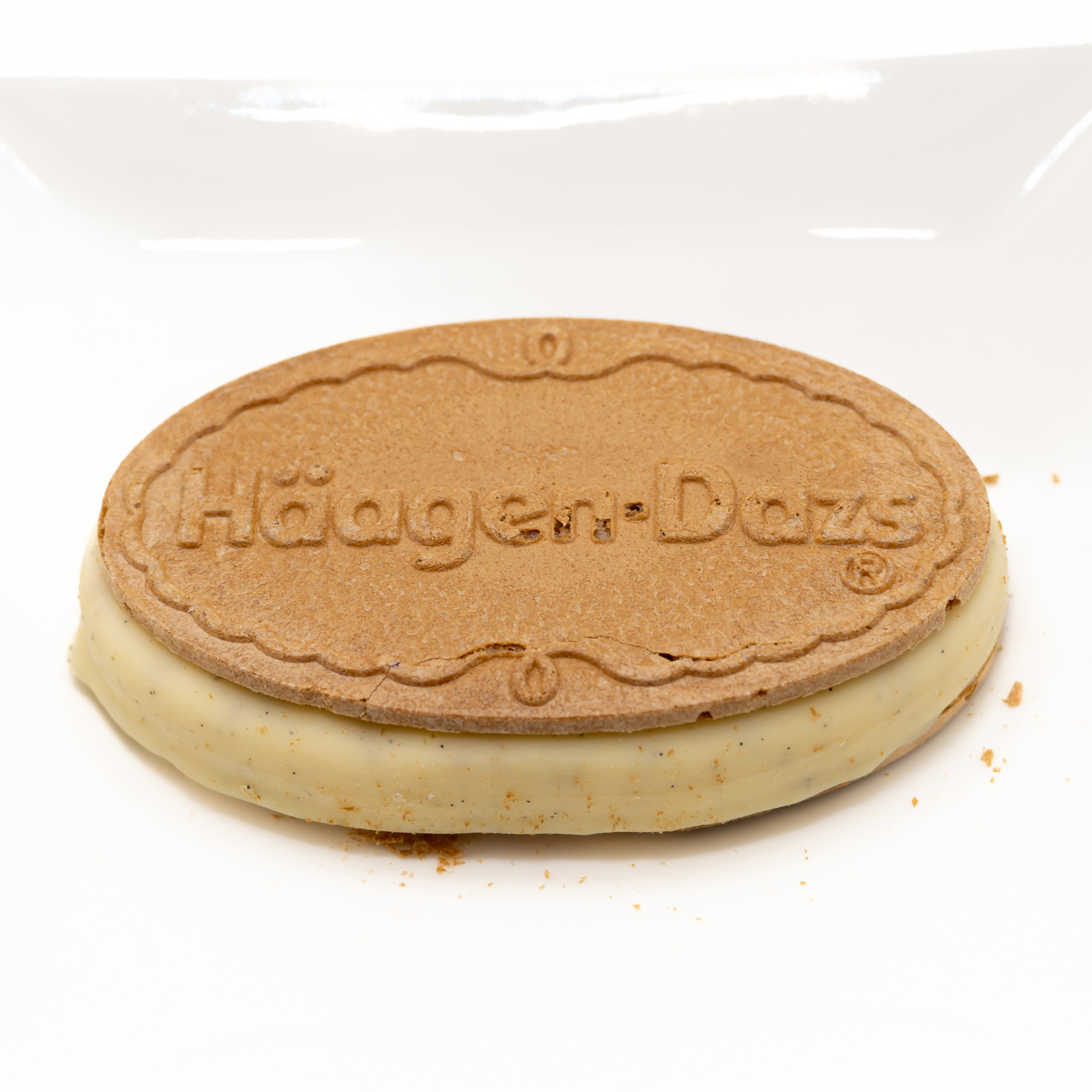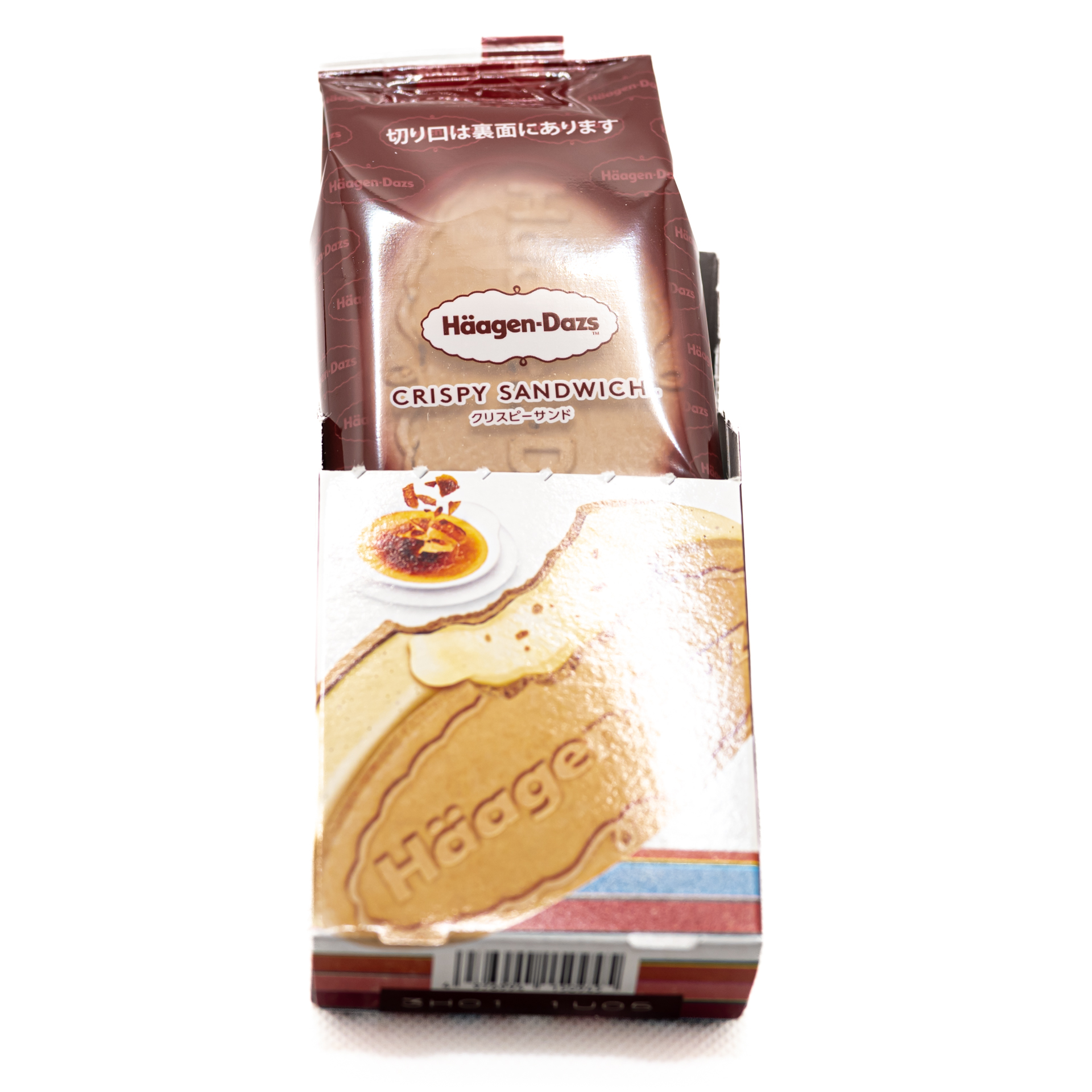 お客様にハーゲンダッツの『香ばしクレームブリュレ』頂きました。 カラメルチップをちりばめたカスタードアイスクリームを、バニラビーンズ入りのカスタードでコーティングし、カルメラウエハースを上下からサンドウィッチにしたアイスクリームです。 カルメラ風味とバニラの味わい、カルメラとバニラビーンズのコリコリとした食感、カラメルウエハースのサクサクとした食感のある、ちょっと複雑なアイスクリーム。 不思議な美味しさのアイスクリームでした。 |