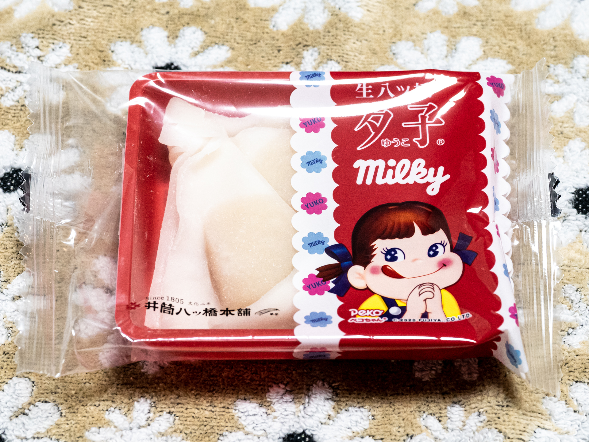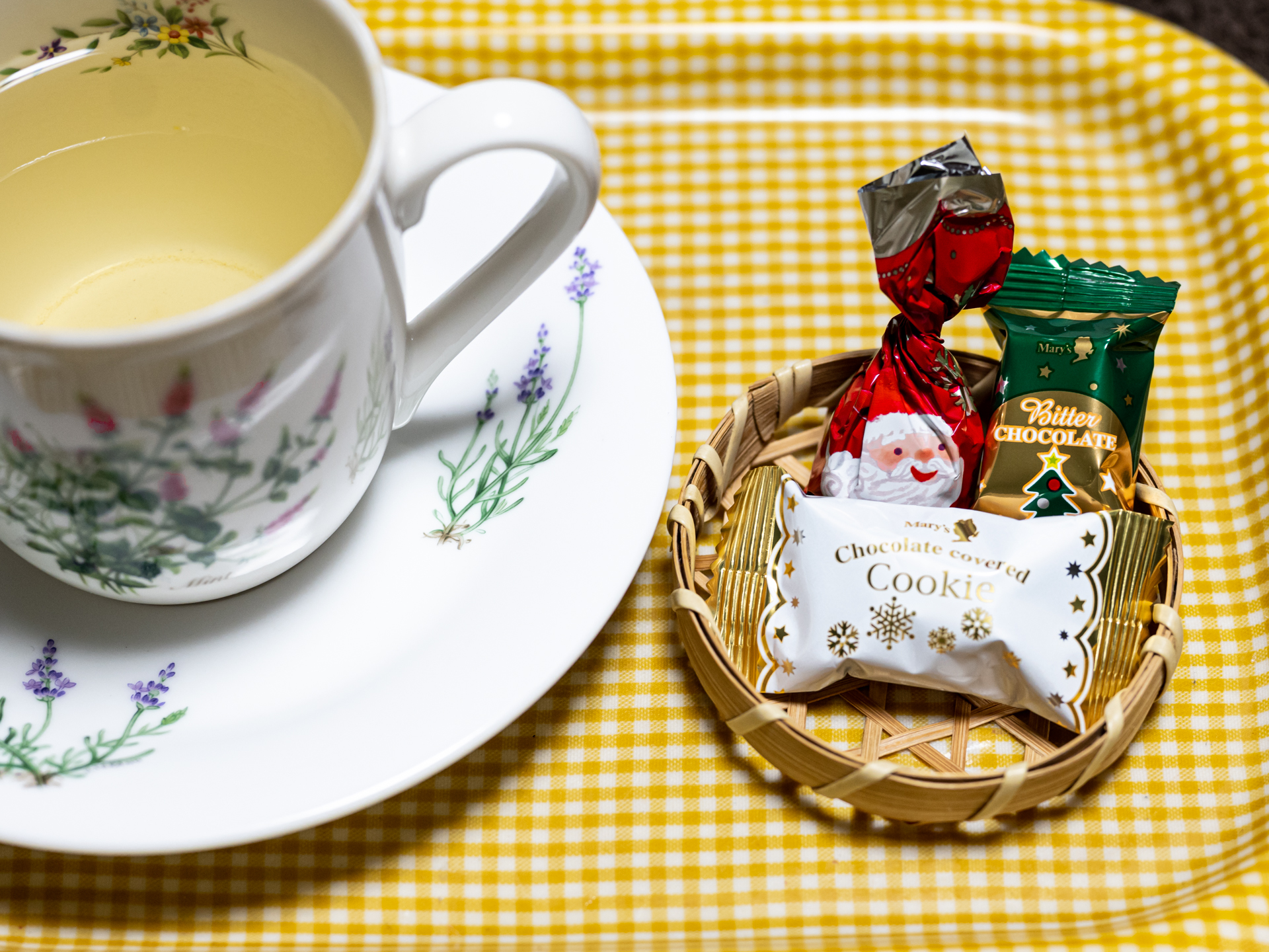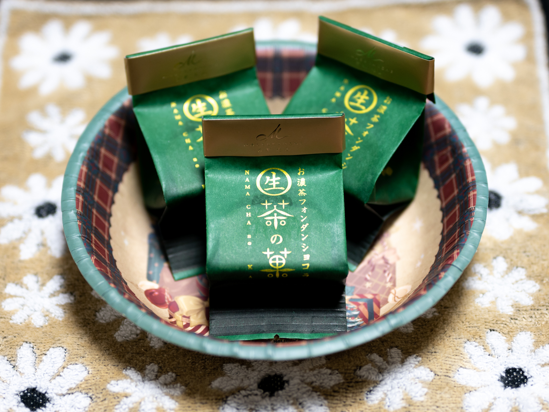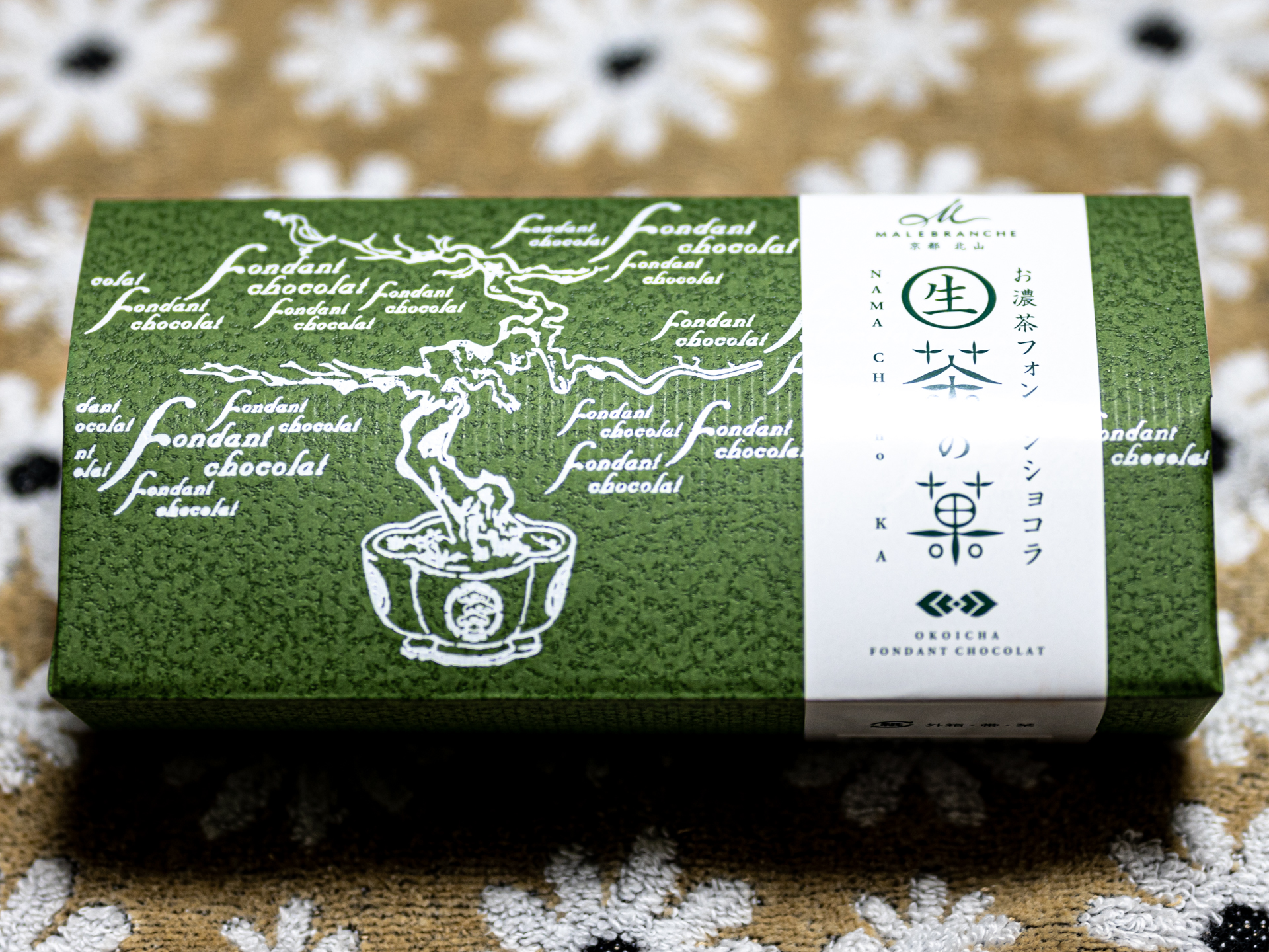 お客様に京都のお土産を頂きました。 マールブランシュの『お濃茶フォンダショコラ「生茶の菓」』と井筒八ッ橋本舗『叙情銘菓「夕子ミルキー」』。 |