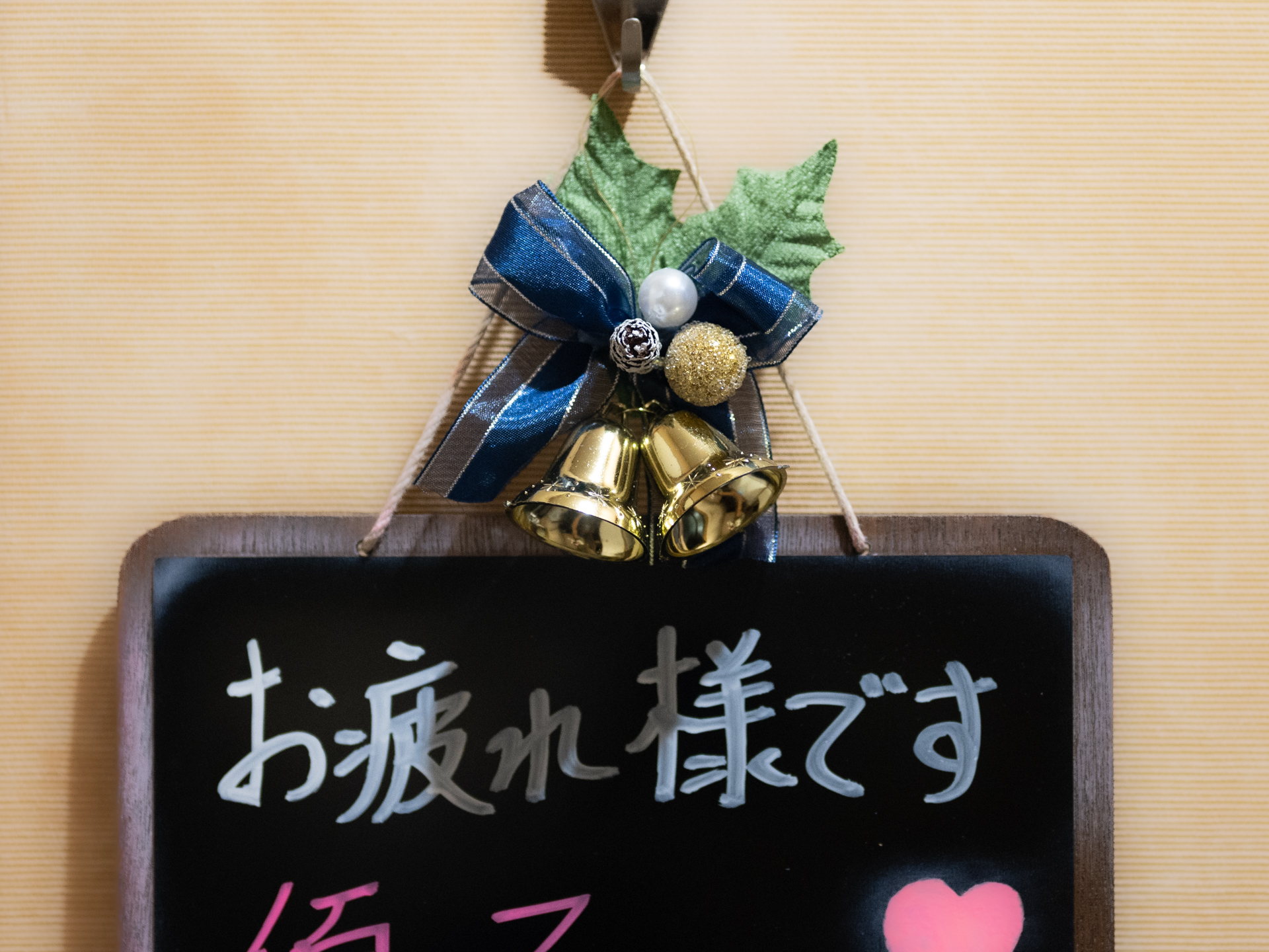 | ウエルカムボードにクリスマスの飾りをつけました。 |