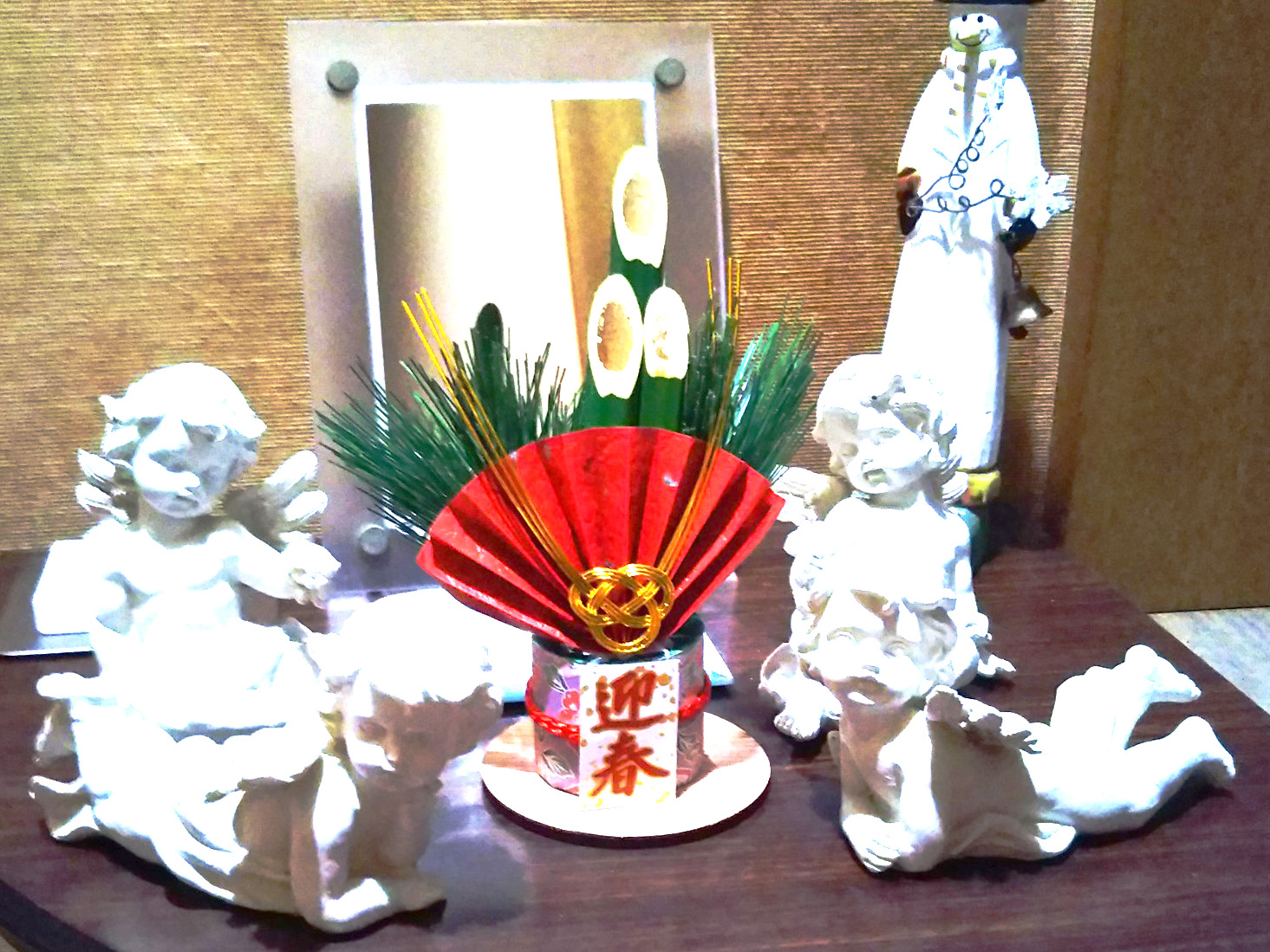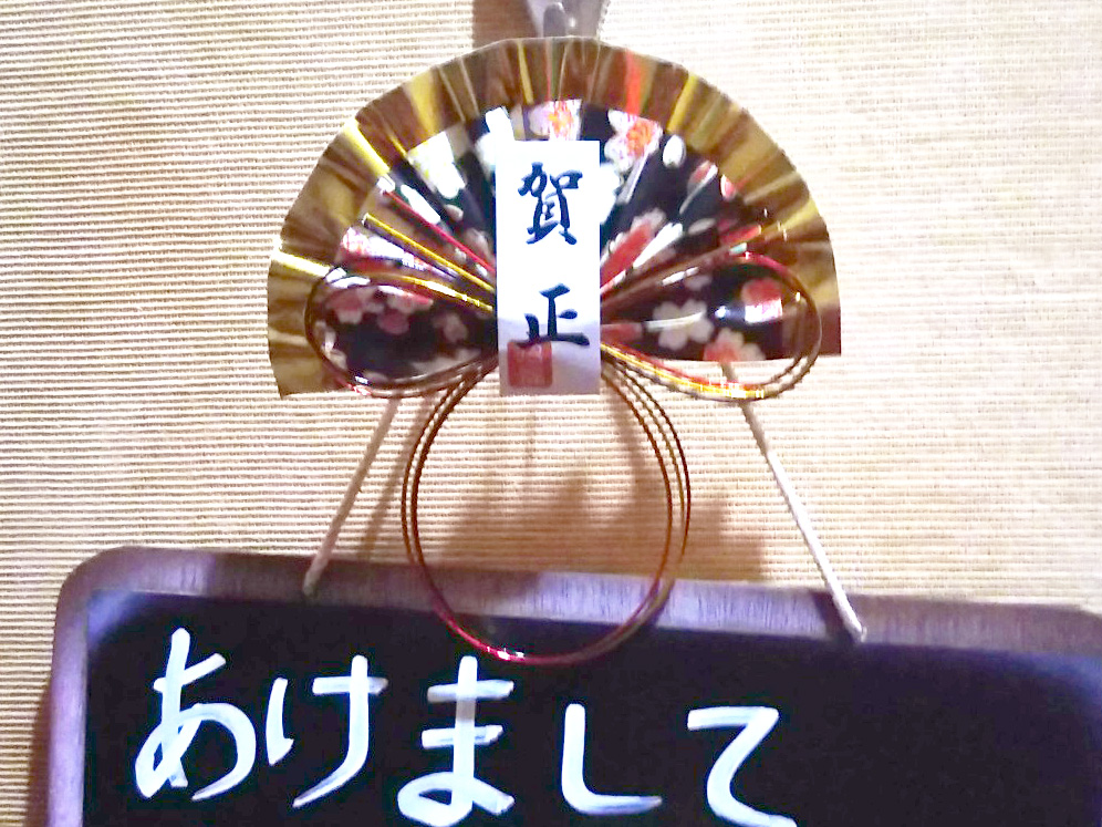 | サロン部屋の前に飾った門松としめ飾りです。 |