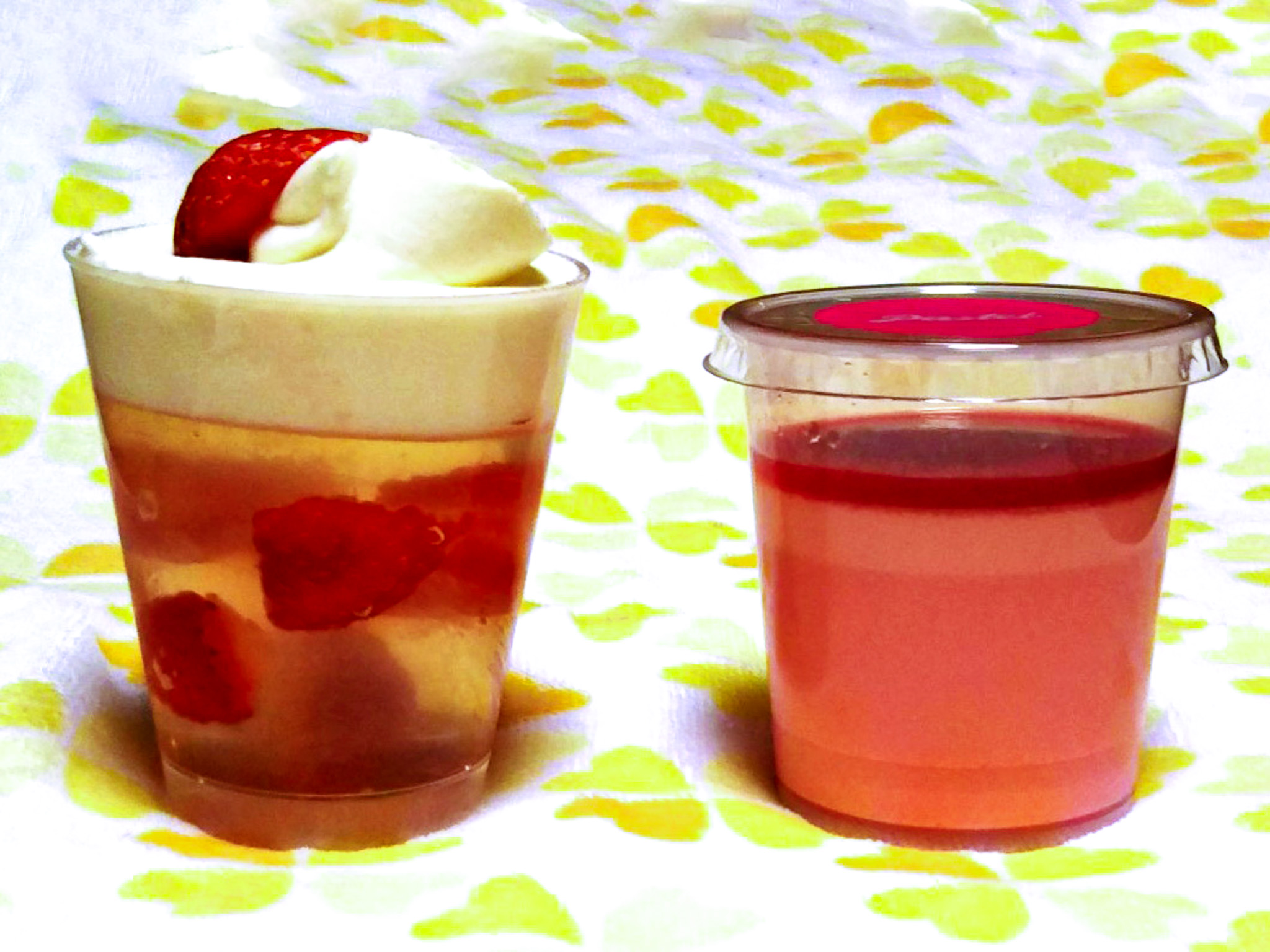 お客様に頂いたパステルのスイーツ。 「あまおうイチゴゼリ-」(左)と「なめらかあまおうイチゴプリン」(右)です。 ゼリーの方はさっぱりした甘さ、プリンの方は濃厚な甘さで、どちらも美味しかったです。 |
