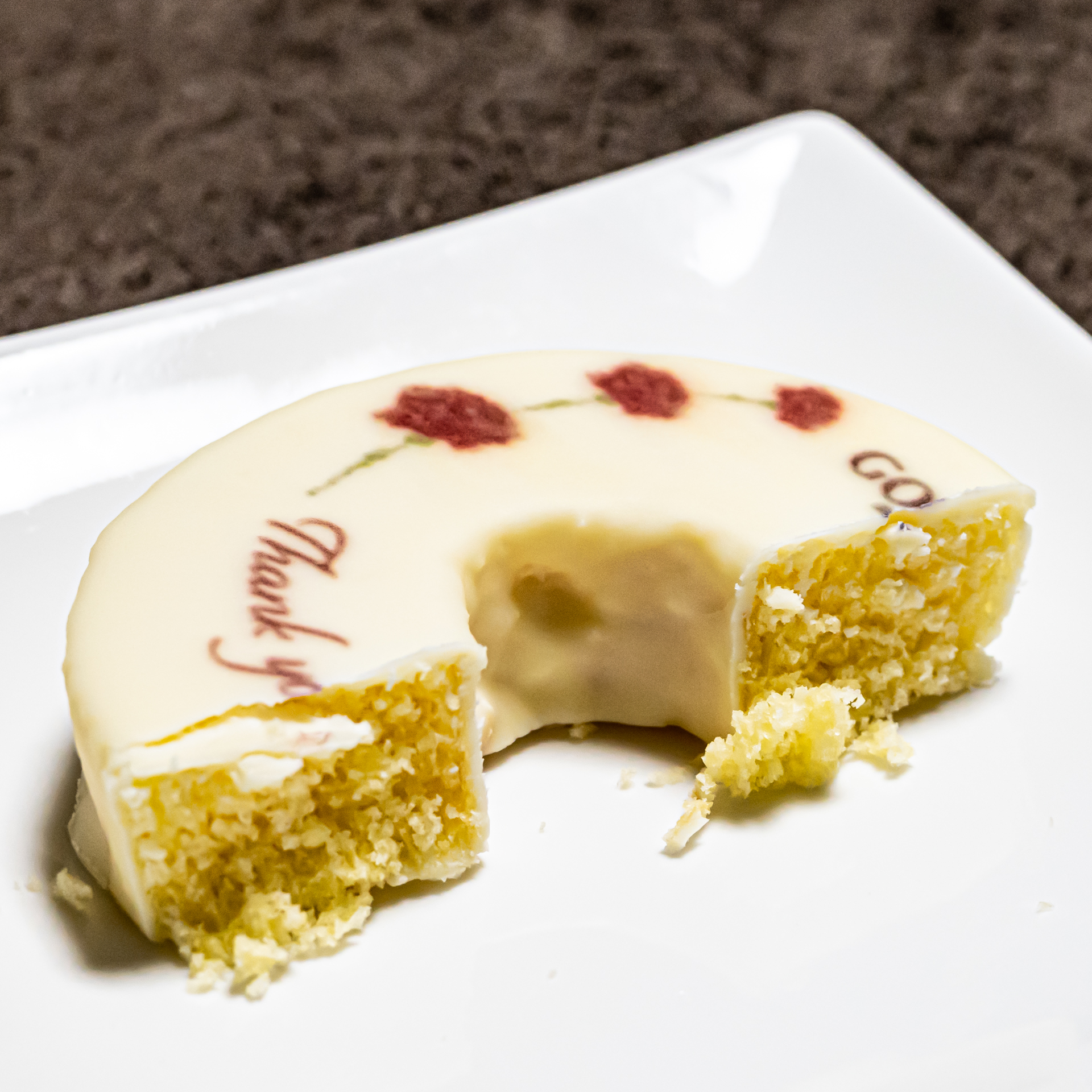 ゴディバの母の日お祝いメッセージ入りのバームクーヘンを頂きました。 お客様が母の日のプレゼントの候補として購入されたものを試食させて頂きました。 バームクーヘンにホワイトチョコレートがコーティングされています。 柔らかくて甘くて美味しかったです。 |