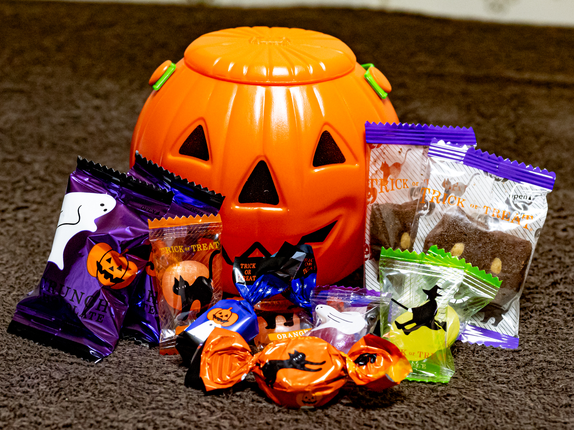 お客様から、モロゾフのハロウィン限定の『ジャック オ ランターン』を頂きました。 チョコレート、キャンディ、チョコレートクッキーが入っていました。 |