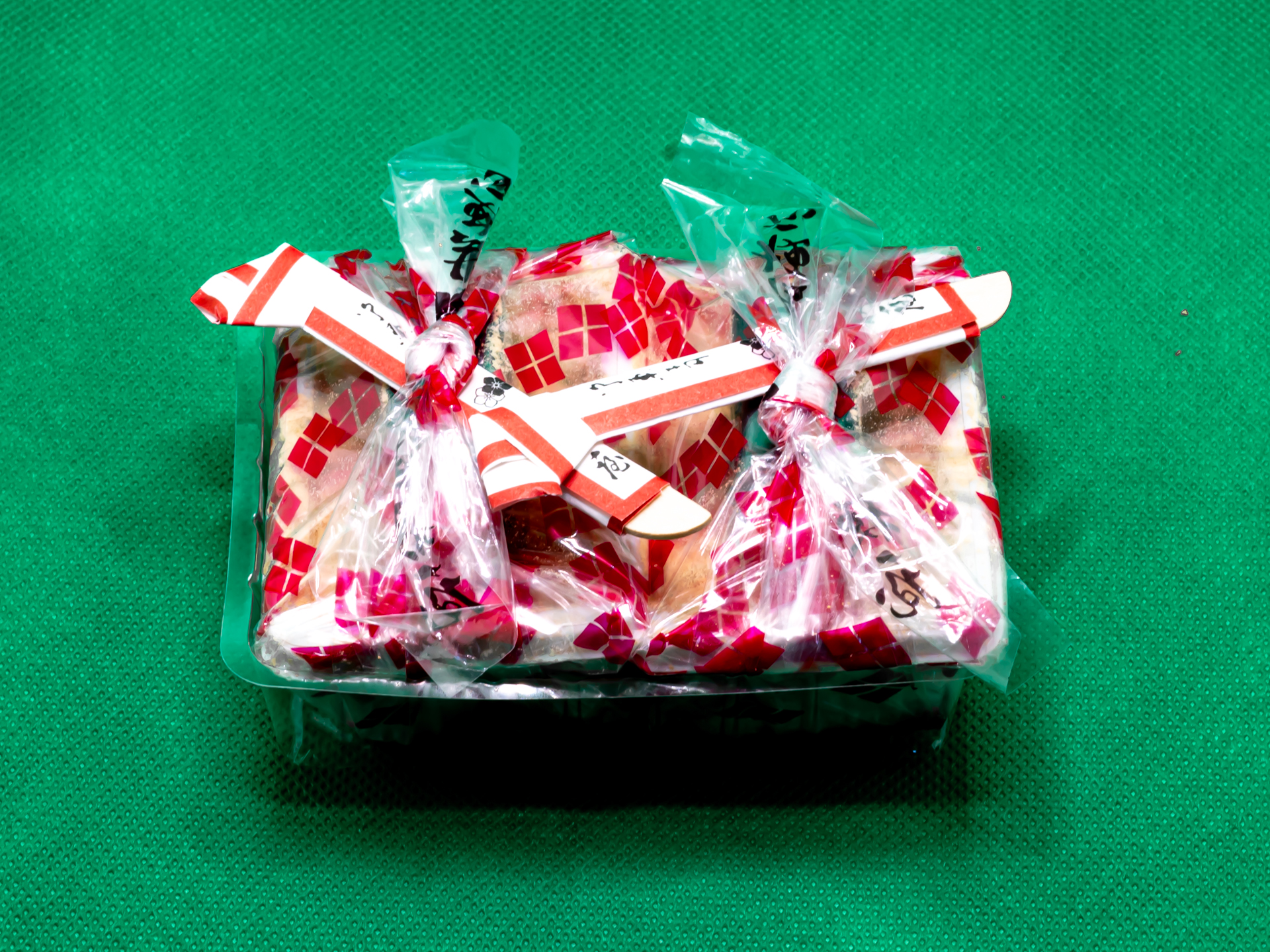 お客様から、 山梨の銘菓、桔梗屋の桔梗信玄餅を頂きました。 お餅にきな粉がまぶしてあり、特製の黒蜜を掛けて頂きます。 甘くて美味しかったです。 |