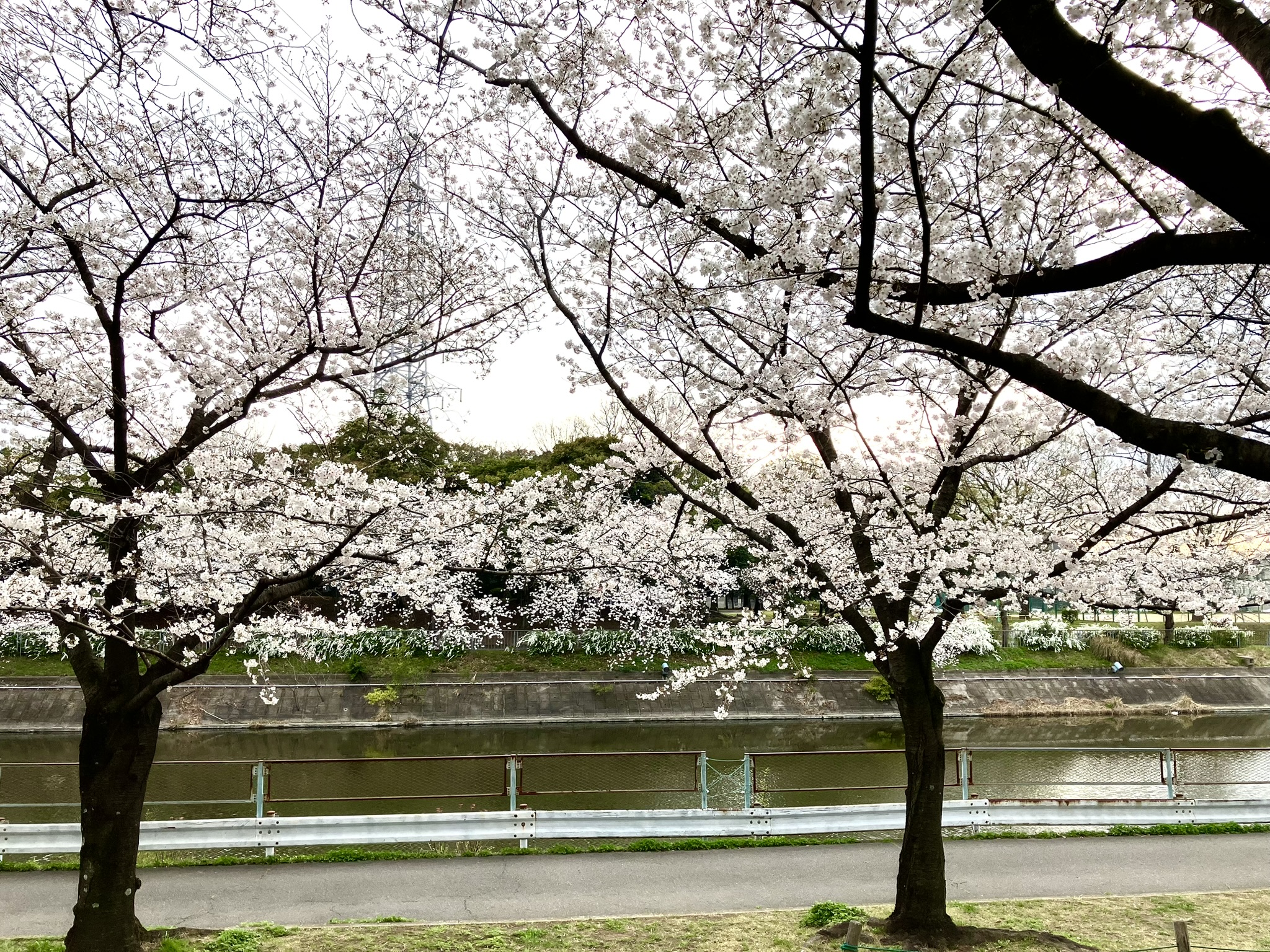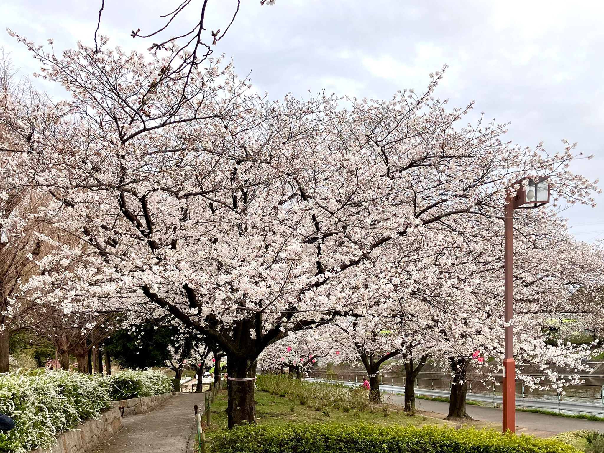 荒子川公園の桜🌸。 満開。 やや散っています。 |