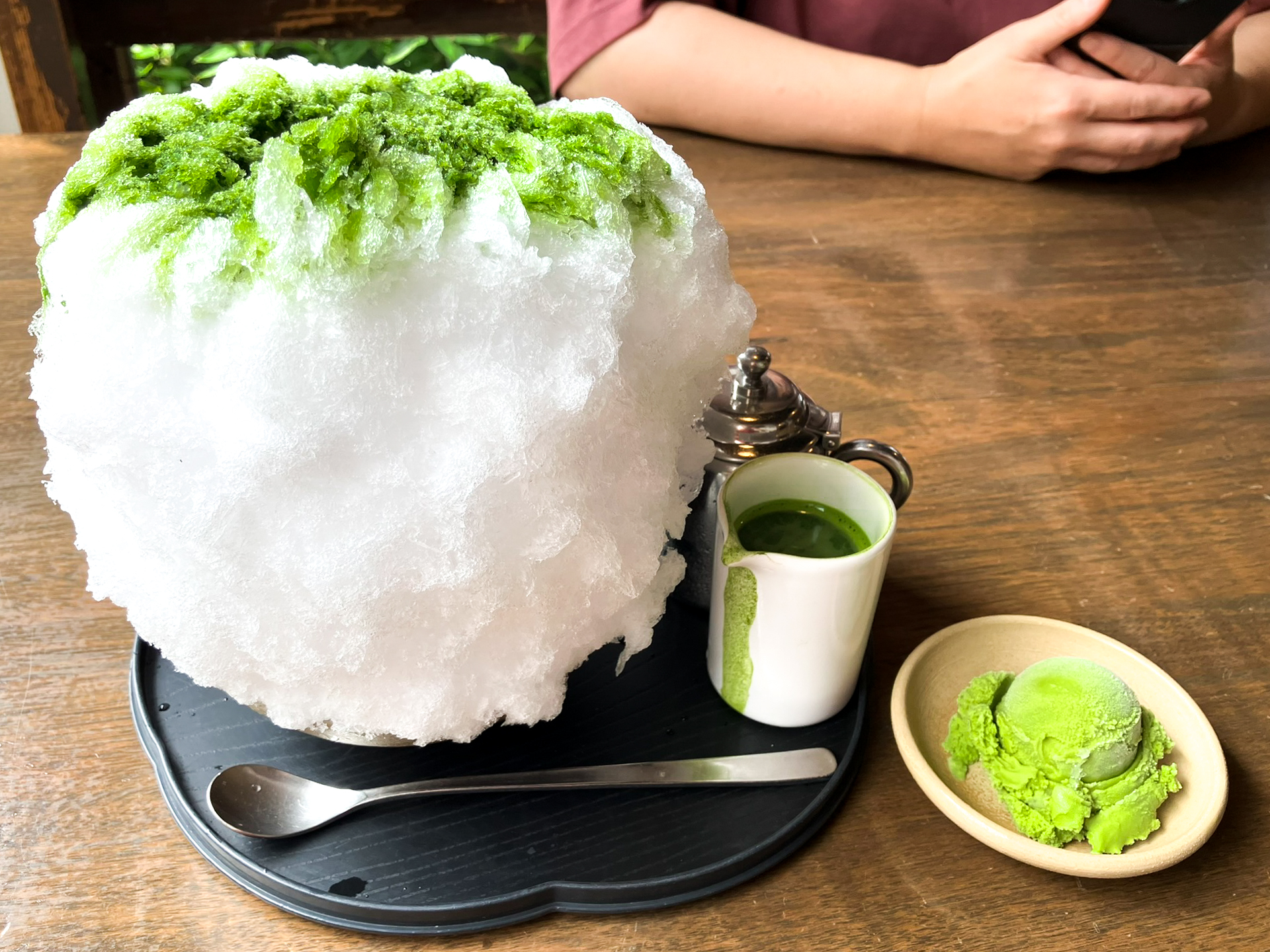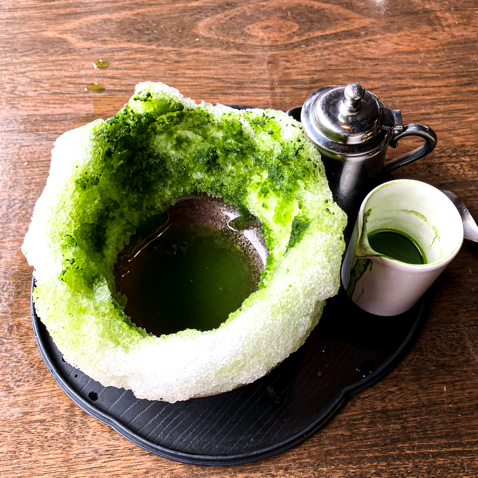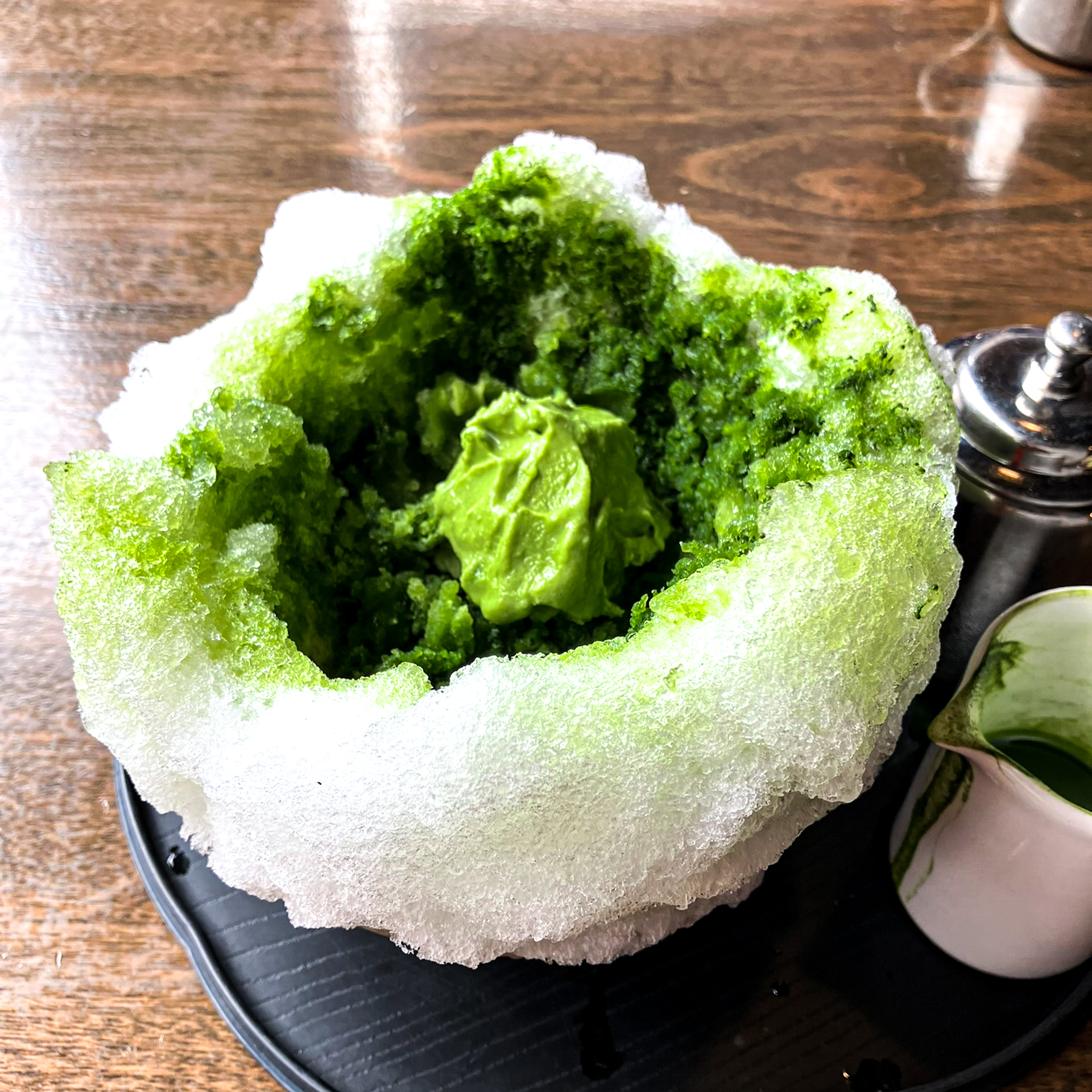 毎日暑いですね。 先日、常滑にある『大蔵餅』にかき氷を食べに行きました。 大人気店のようです。 平日の午前中にも関わらず、ほぼ満席。 早く行って正解でした。 比較的小さな器に、山のように盛られた氷。 フワフワ感がないので、残念に思っていましたが、これには訳がありました。 抹茶とシロップが出て別の容器に入っていて、自分で氷に掛けます。 抹茶の容器はすぐに垂れてしまうので、狙い通り掛けるのが少々難しかったです。 トッピングの抹茶アイス、氷に載せると転がり落ちそうなので、しばらく放置して、氷を食べ進めました。 それで、氷がフワフワでない理由がわかりました。 このかき氷は逆に、少し溶かしてから再び固めて壁になるようにしてあったのです! 中心を食べ進むと、周りが壁になりちょうど井戸のようになります。 そこで、井戸の底に抹茶アイスを置くとアイスがとても食べやすくなりました。 どんどん食べ進んで、最後には氷の器の底まで到達。 周りの氷の壁はちゃんと立っています。 最後に、この壁を崩しながら頂きました。 山盛りの氷を器の外に飛び散らせることなく最後まで食べられました。 お腹いっぱい・・・満足満足。(#^^#) |