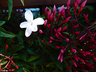 4月の中頃に赤い蕾がいっぱい付け、咲き始めます。