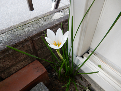 <<門の内側にささやかに咲いているタマスダレ。>>