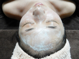 タラソテラピーのフェイスパックを行います。