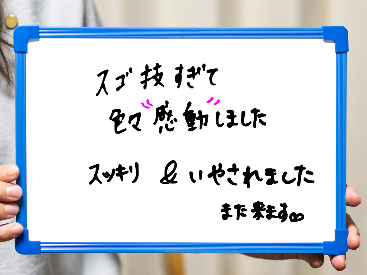 忙しくて疲労困憊していたところ、時間ができたと言うことで、4年振りのご来店。 前回はコロナの時期だったので、暇だったそう。 シェイプアップマッサージは皮下組織をメインに徹底的にほぐします。 皮下組織はもちろん、その下の筋肉組織もたっぷりほぐさせることになります。 血行も代謝もアップ。 疲れもストレスもすっ飛んでしまいますよ。 |